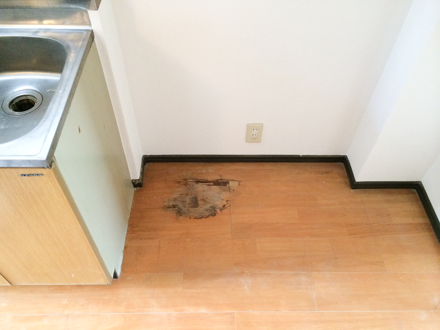 福岡市城南区の賃貸アパートにてフローリングの腐食補修。