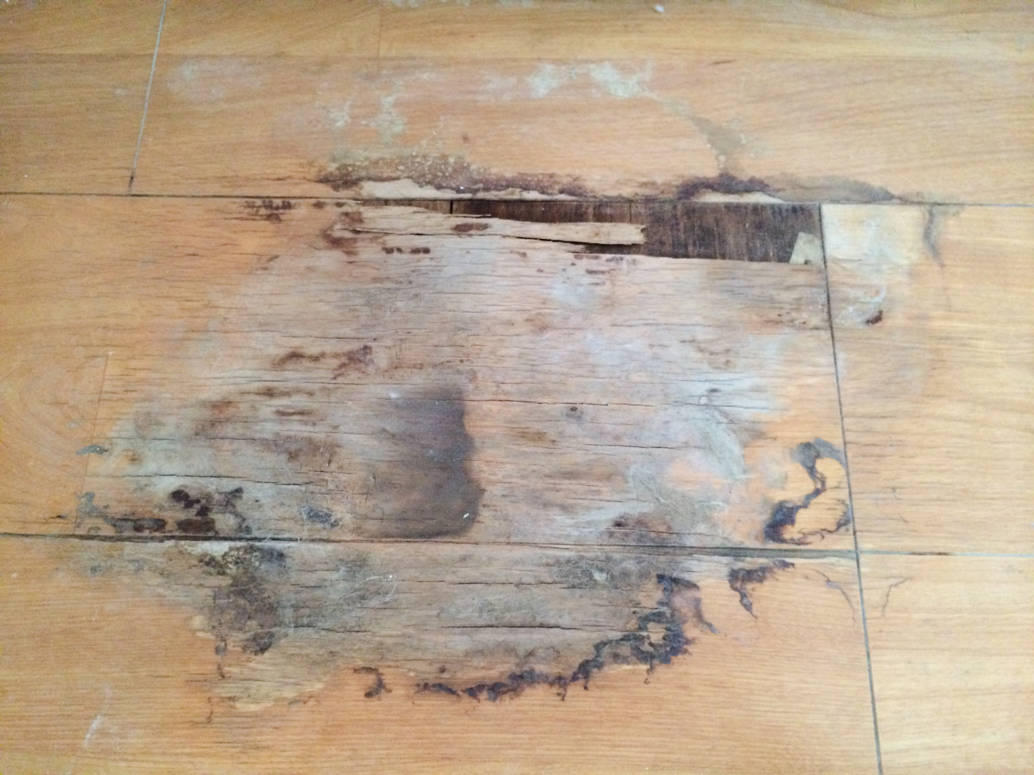 冷蔵庫を置いてあった場所でしょうか。湿気で完全に傷んでしまっております。