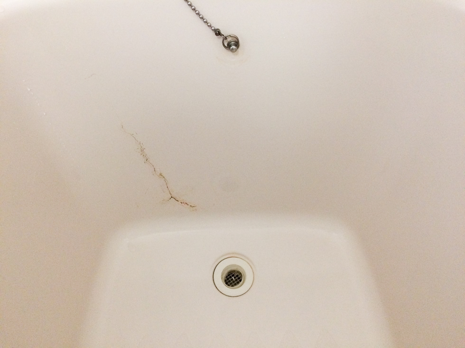 何かをぶつけて割れてしまい、水漏れで入浴できないとのこと。