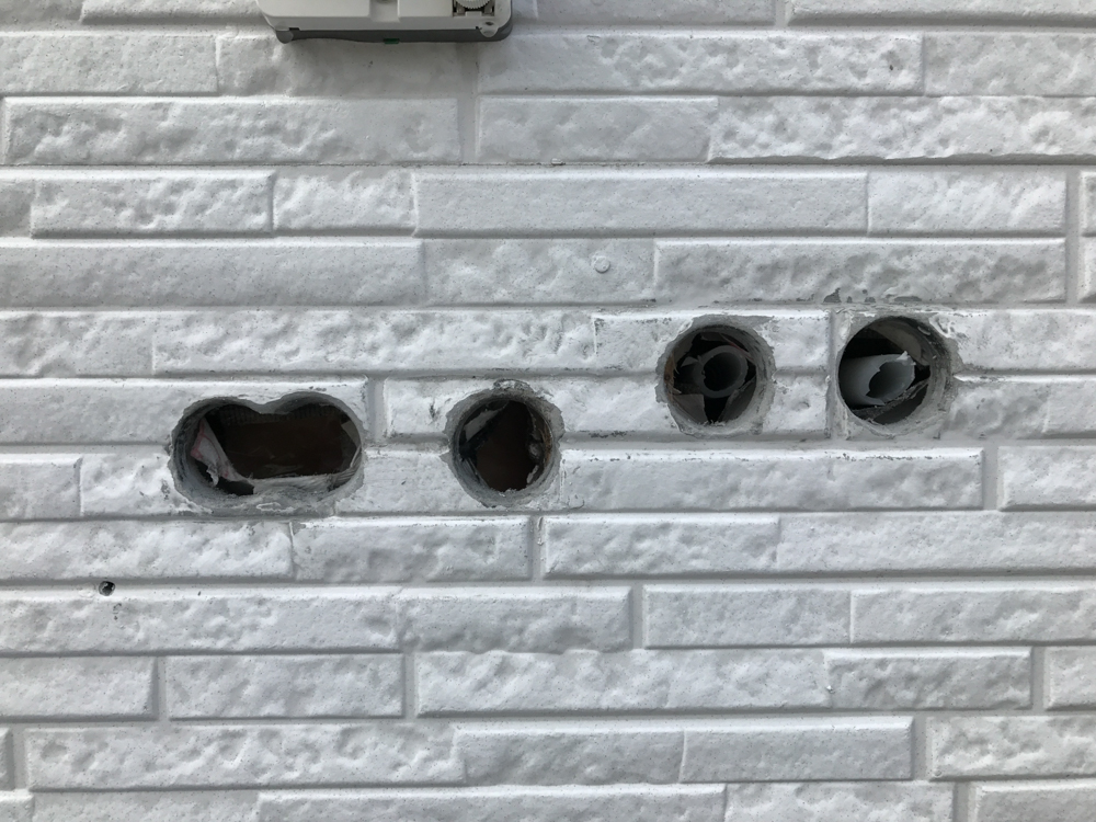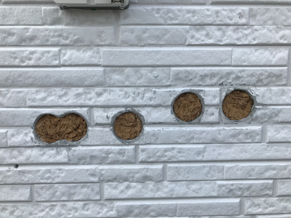 糟屋郡宇美町の新築戸建物件にて、外壁の穴補修。