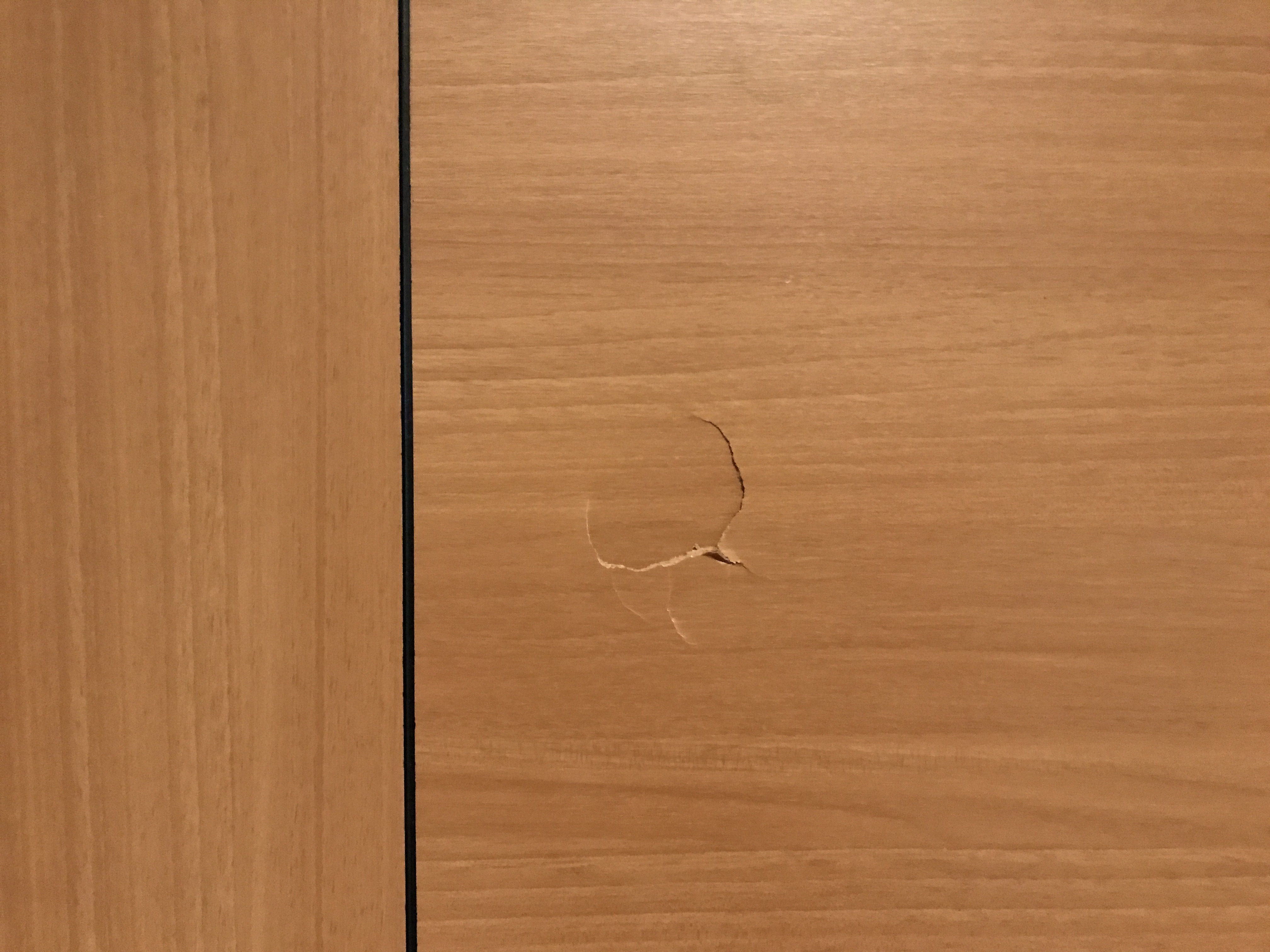 佐賀市の築20年分譲マンションにて、室内ドアへこみ補修。