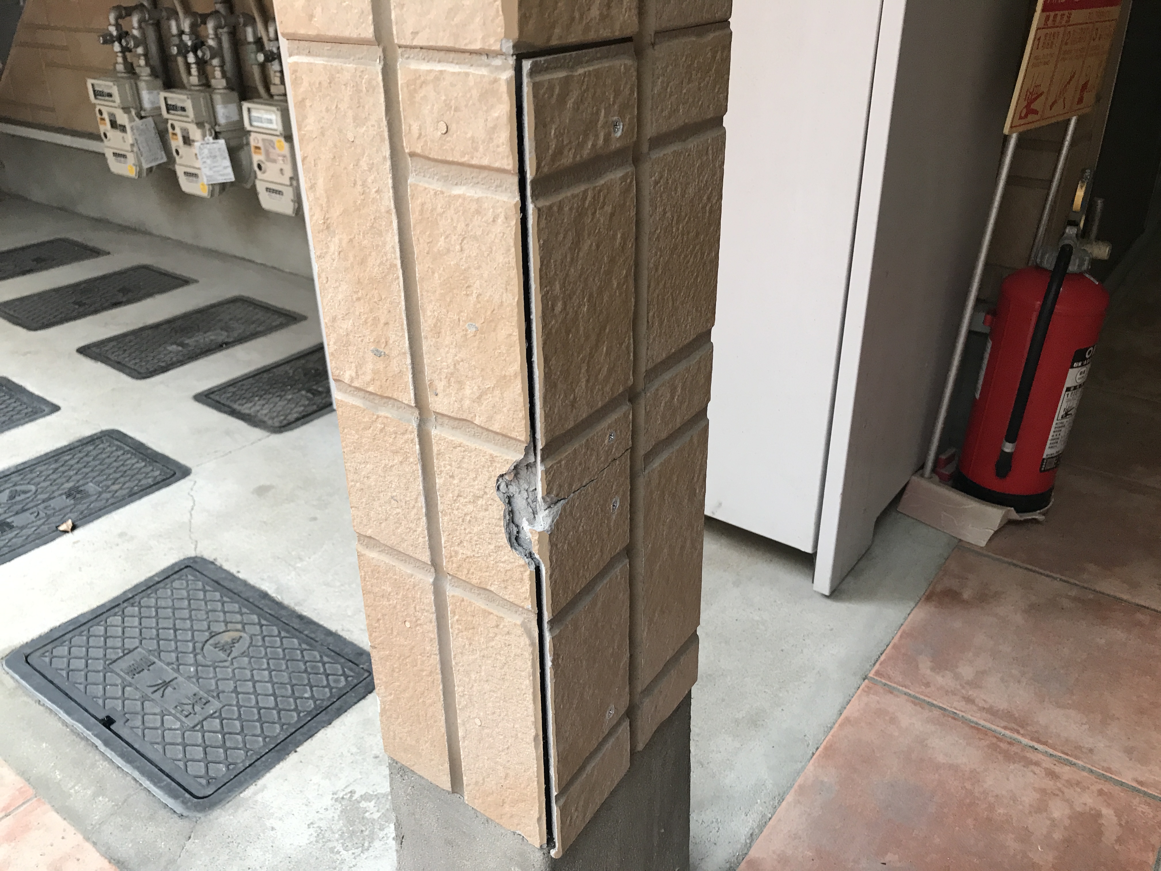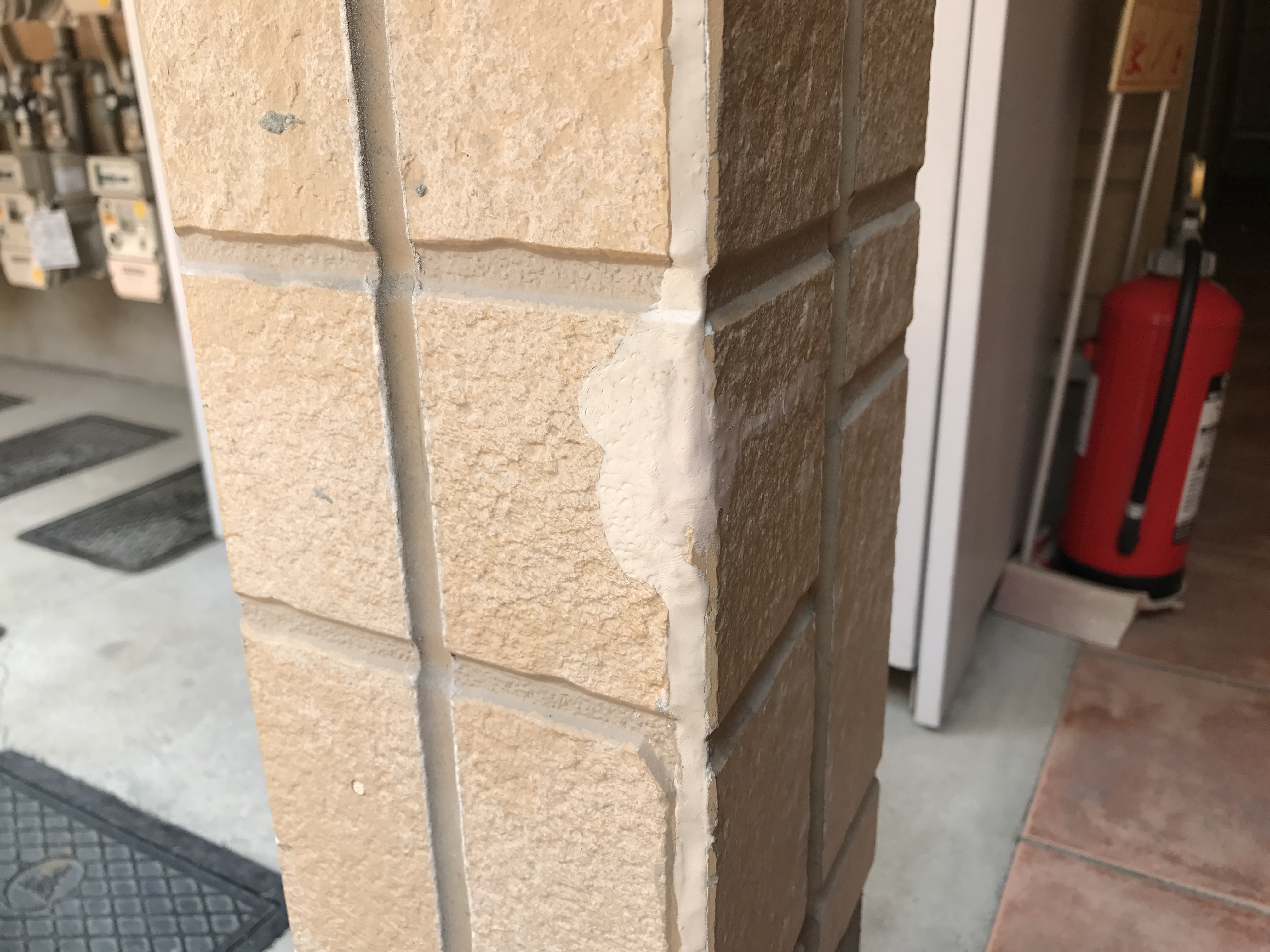 福岡市南区の賃貸アパートにて、外壁の破損補修。