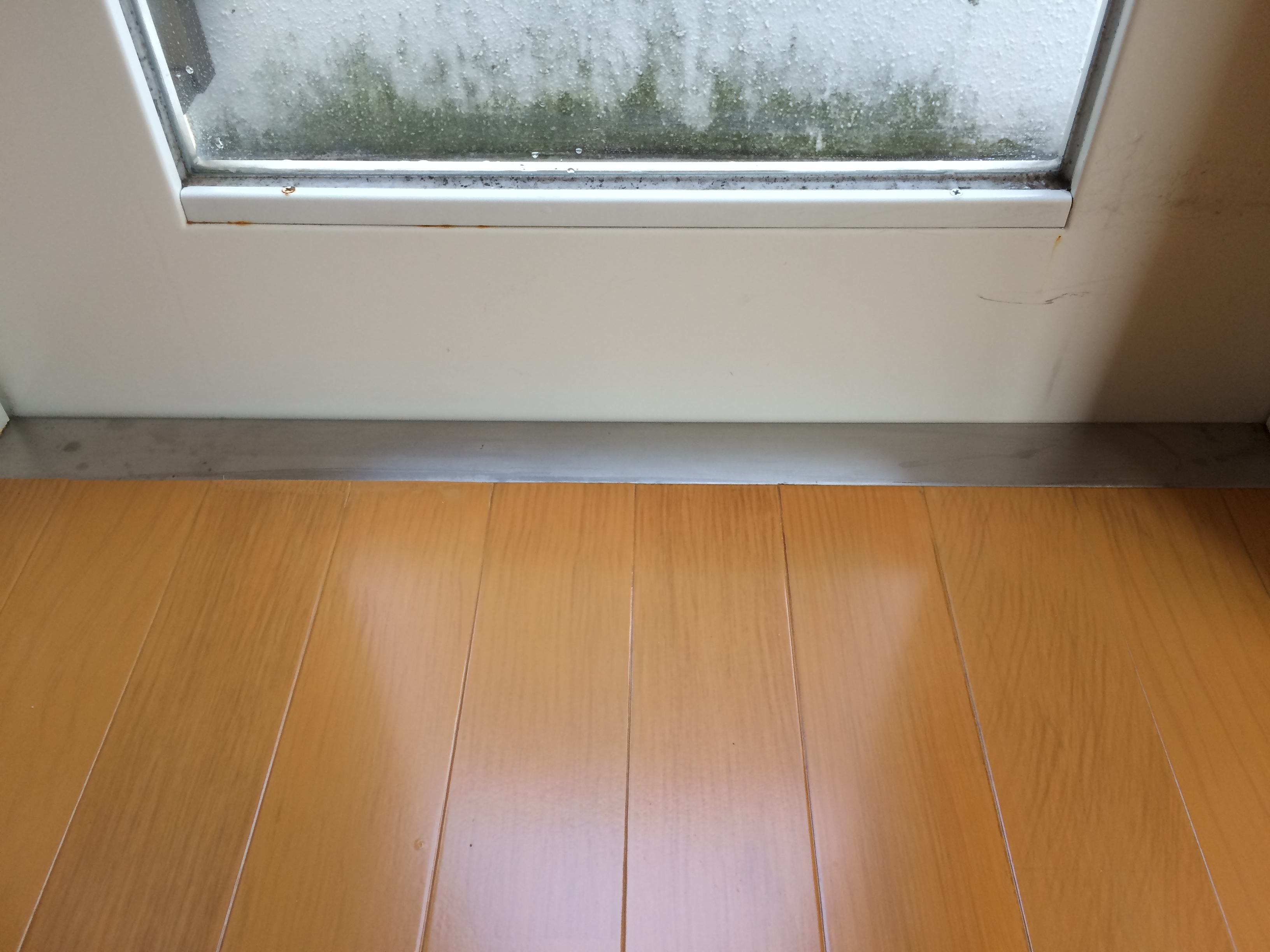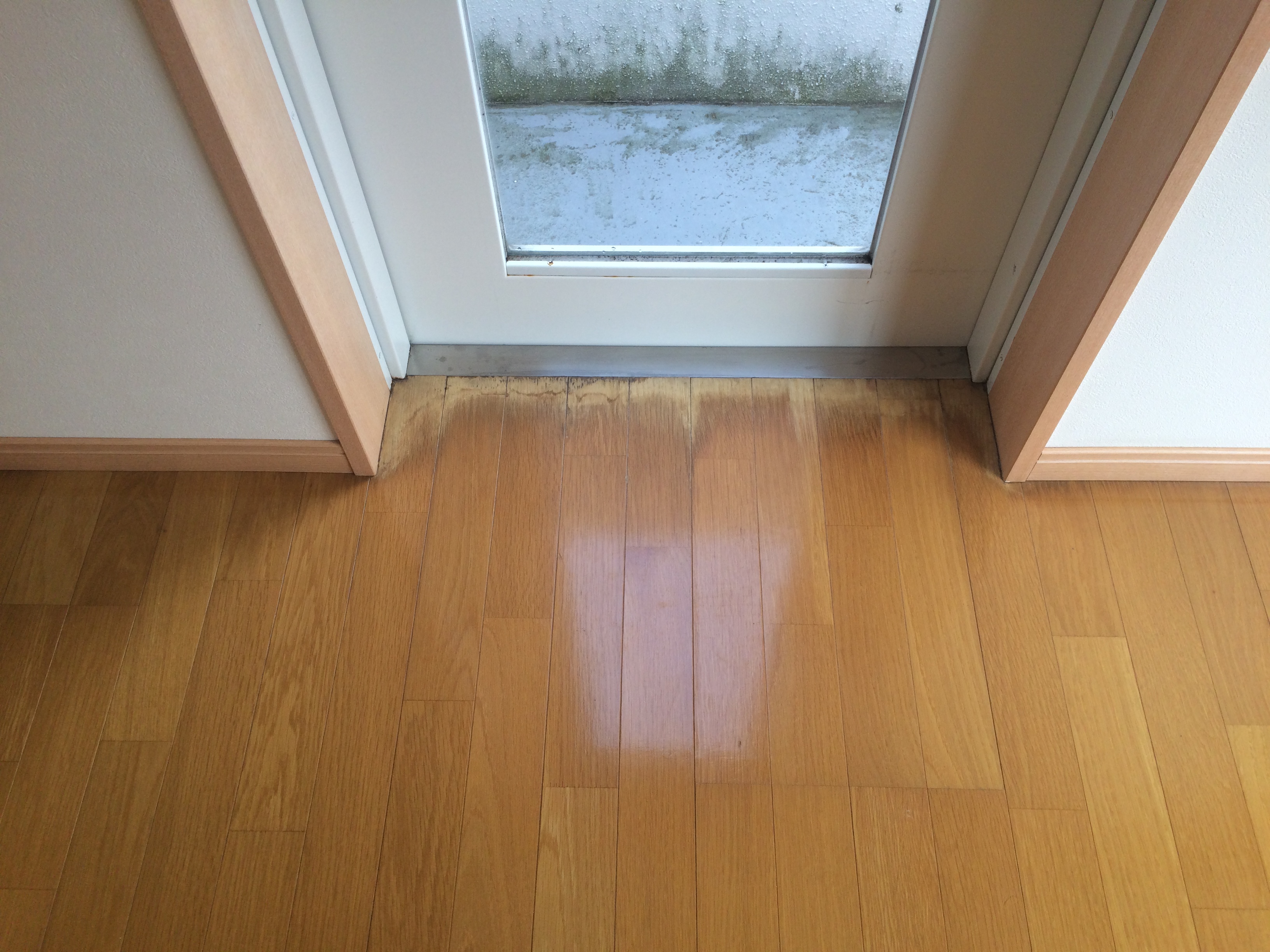 本日のご依頼は 福岡市中央区の賃貸マンションにて、フローリング掃出口の再生工事です。 この部分は結露や直射日光で腐食しやすいのです。