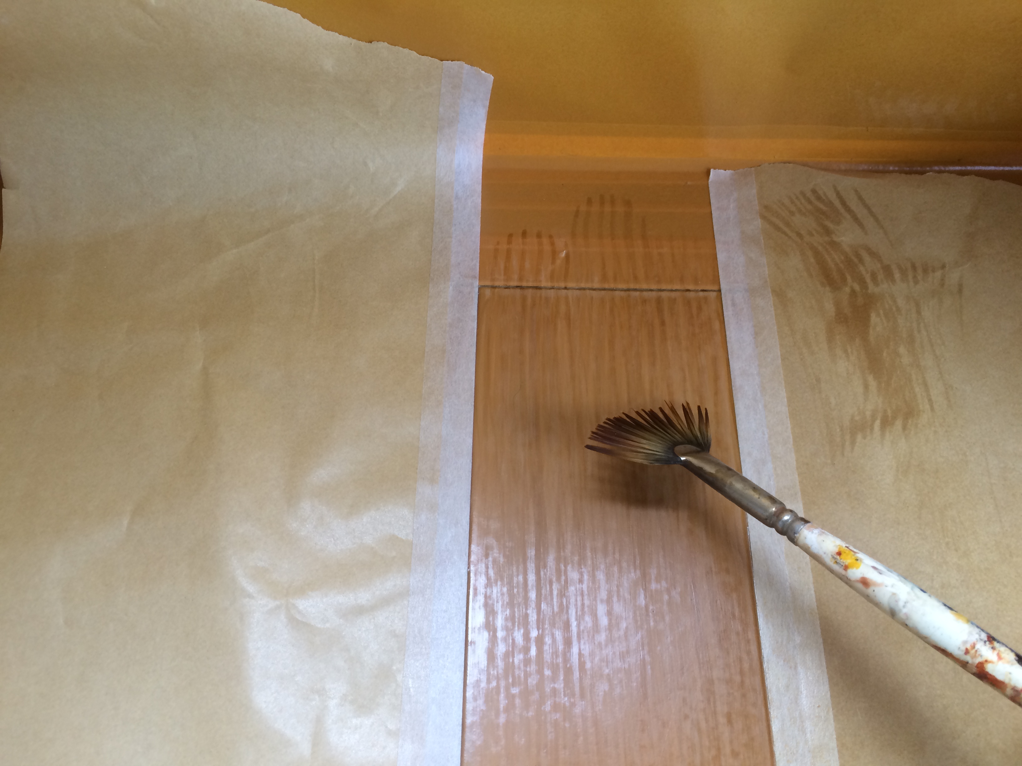 ①細かな汚れや凹凸をサンドペーパーで削り取ります。