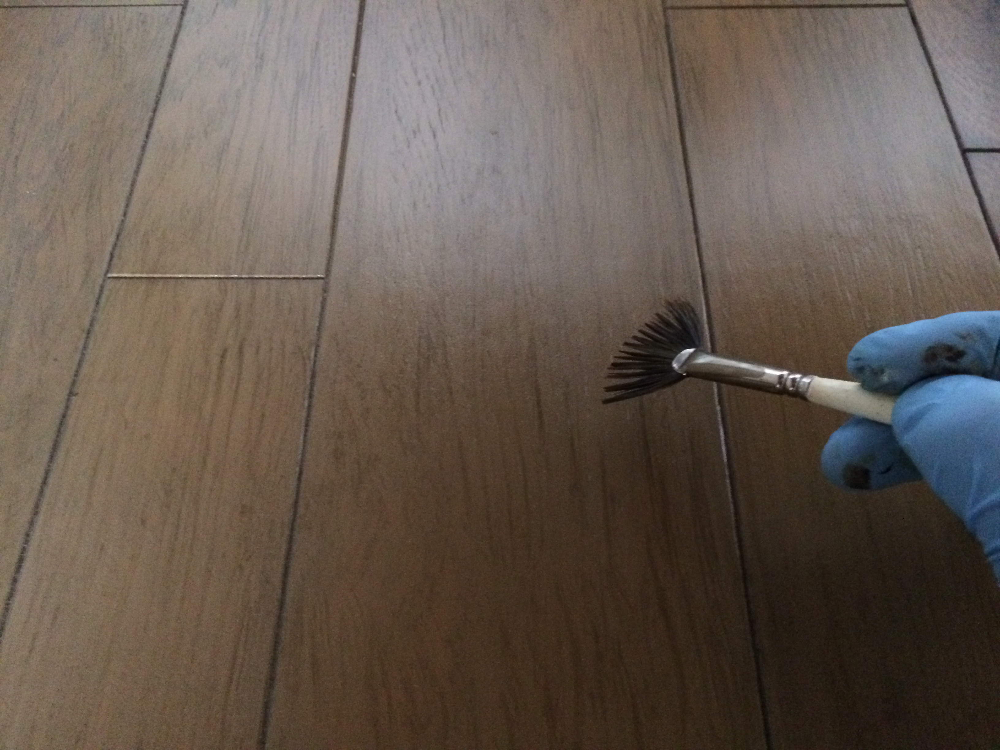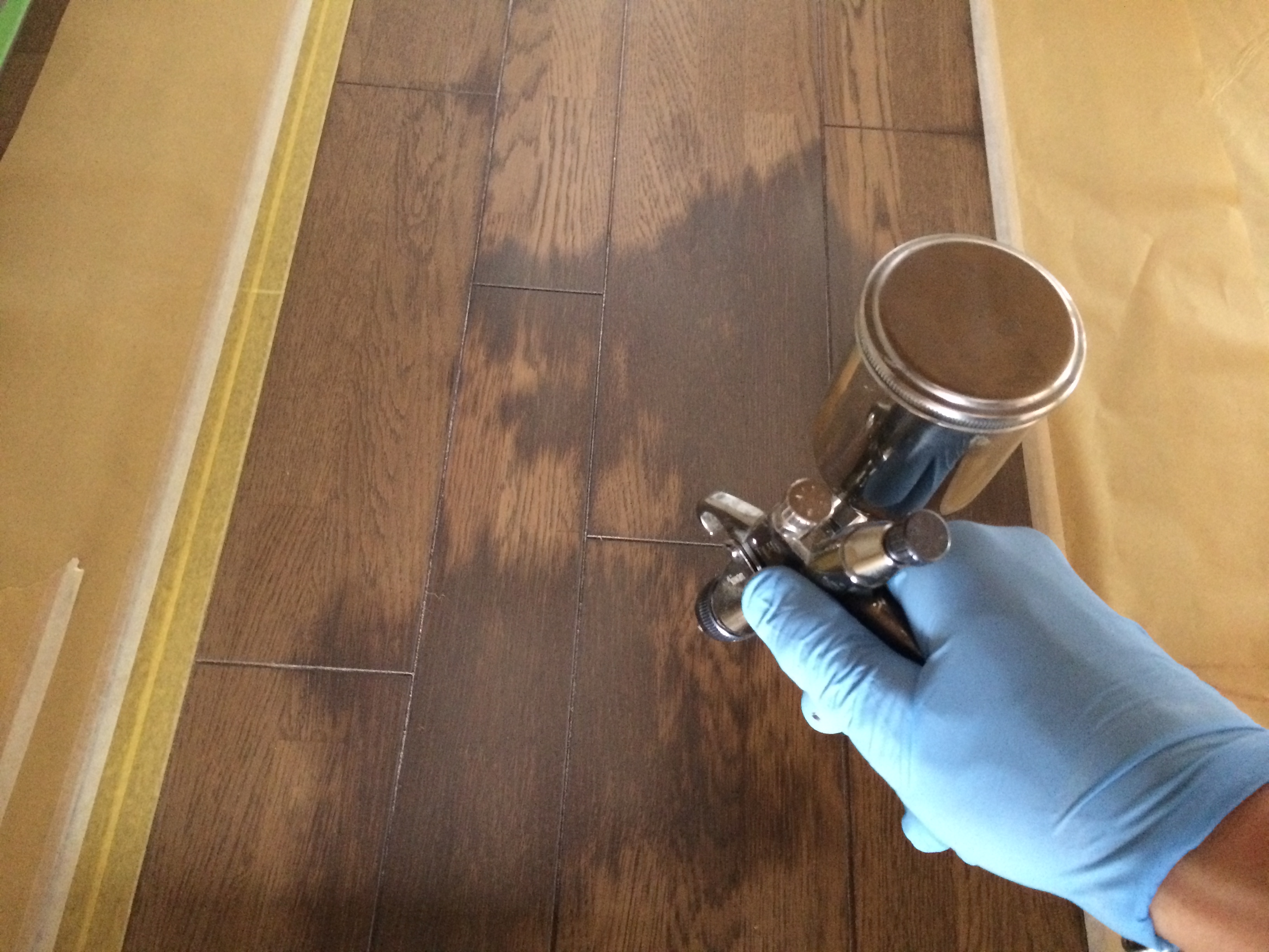 本日の技術は、福岡市南区にてフローリングのシミ補修。