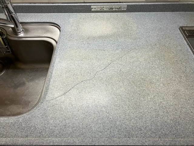 カウンタ表面に30cm程のひび割れができてしまっております。