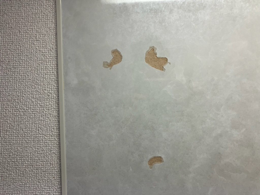 強粘着性用品の除去時に、パネルの面材ごと剥がしてしまったようです。