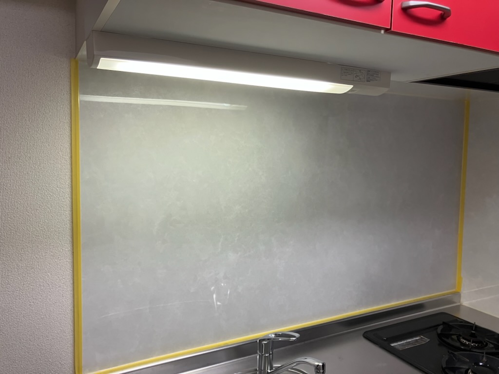 福岡市内の現状回復工事業者様よりキッチンパネル補修のご依頼あり。