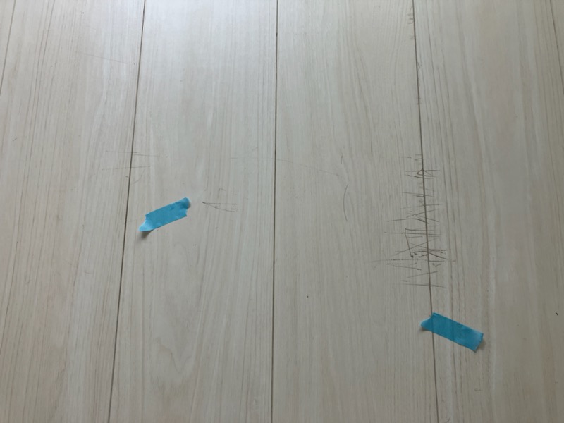 フローリング表面に爪でかかるほどのキズが多数あり。