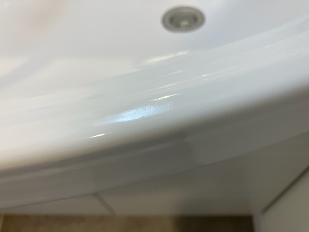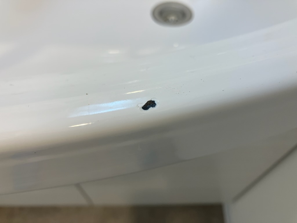 ホーロー製洗面台 前入居者がシンクの縁部を破損させてしまったとのこと。