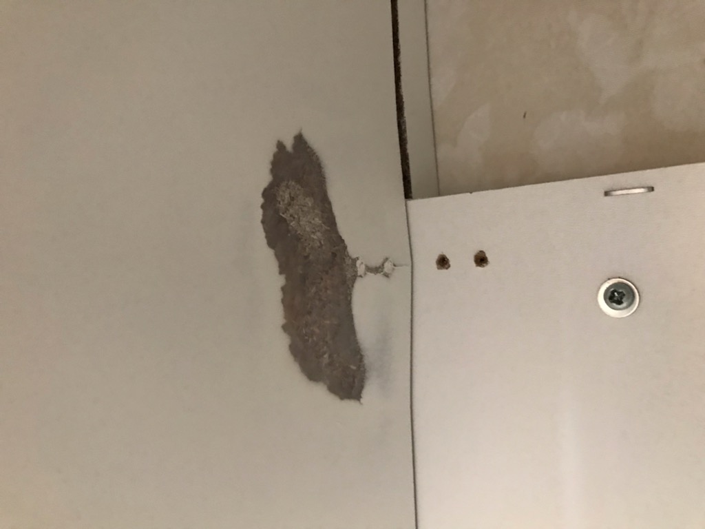 洗面台の下部収納設置時に一部を破損させてしまったとのこと。