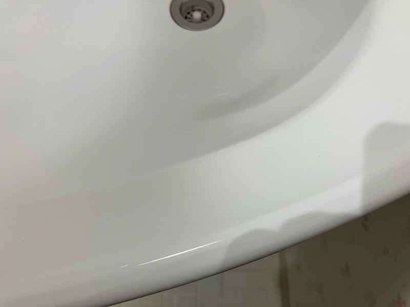 福岡市内の現状回復工事業者様よりホーロー製洗面台リペア補修のご依頼あり。