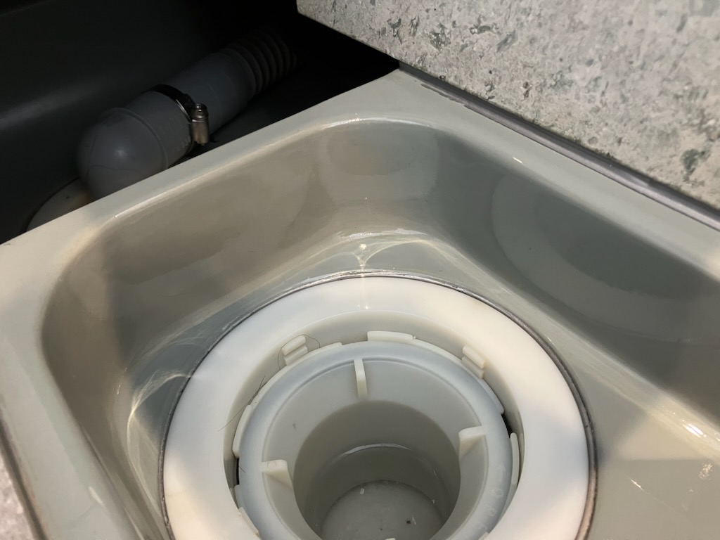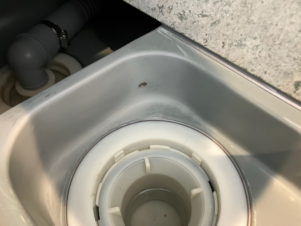 作業中に排水部にモノを当ててしまいキズをつけてしまったようです。