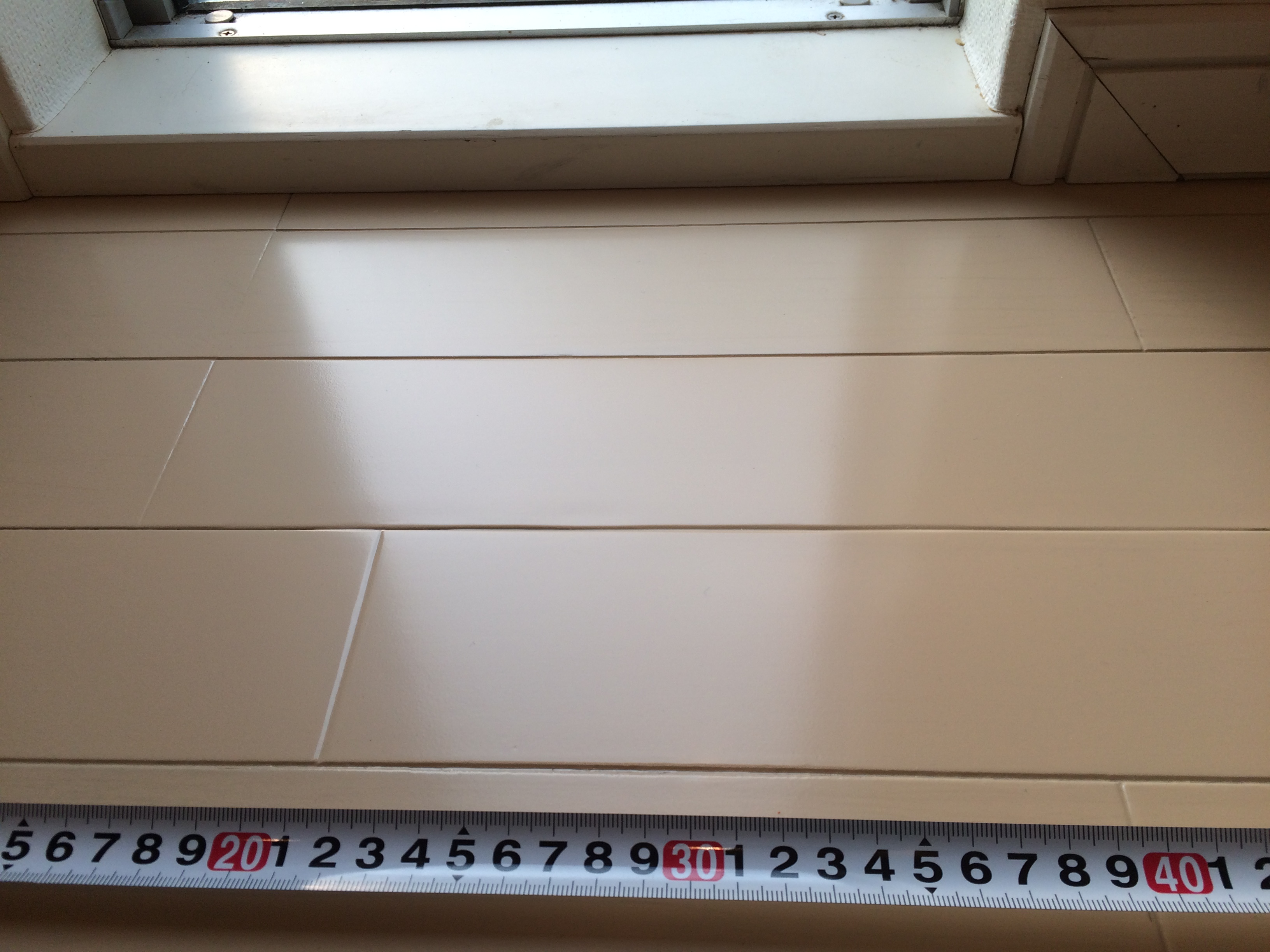 結露で床表面に剥がれ、変色などの劣化が見られます。