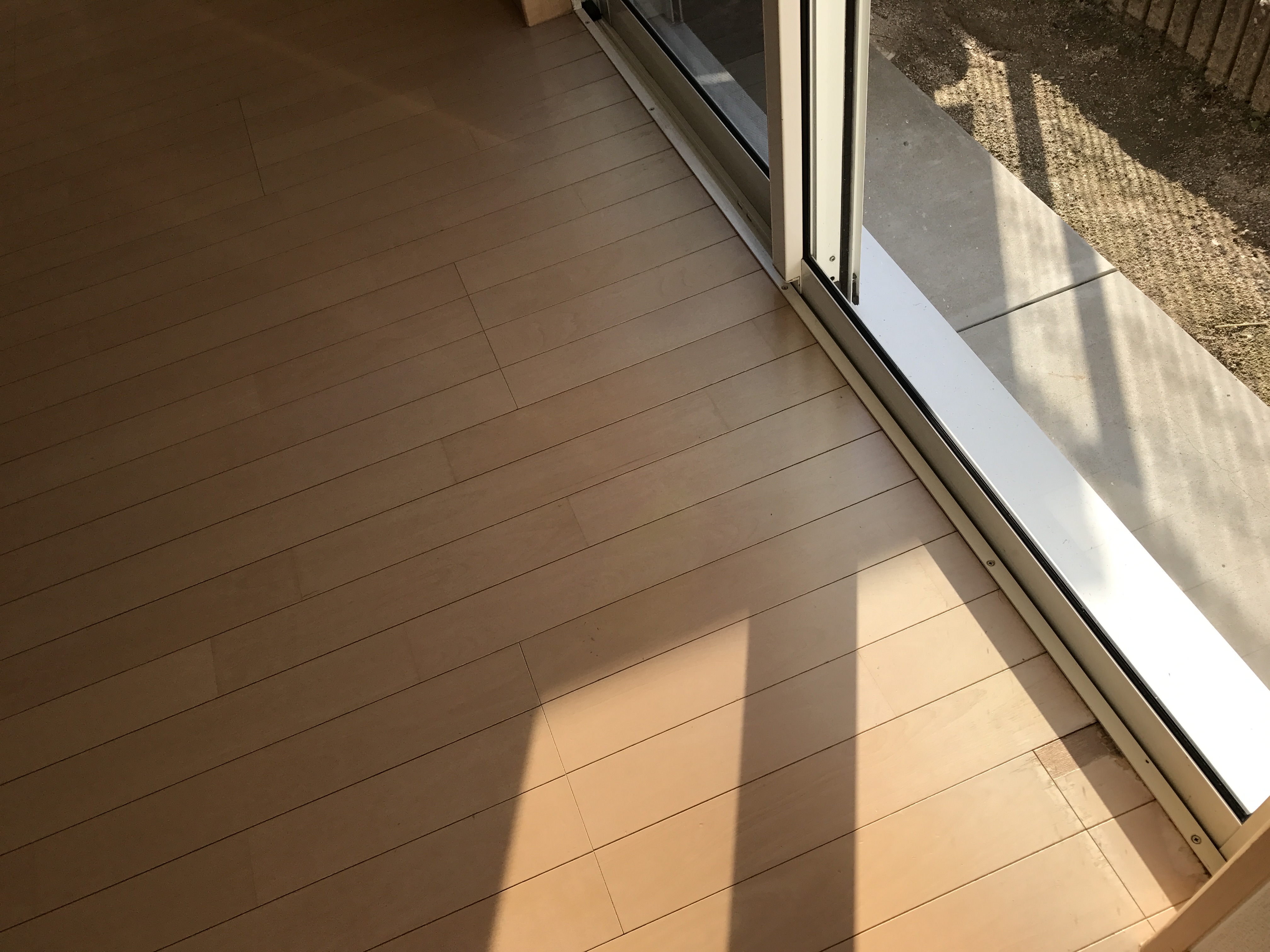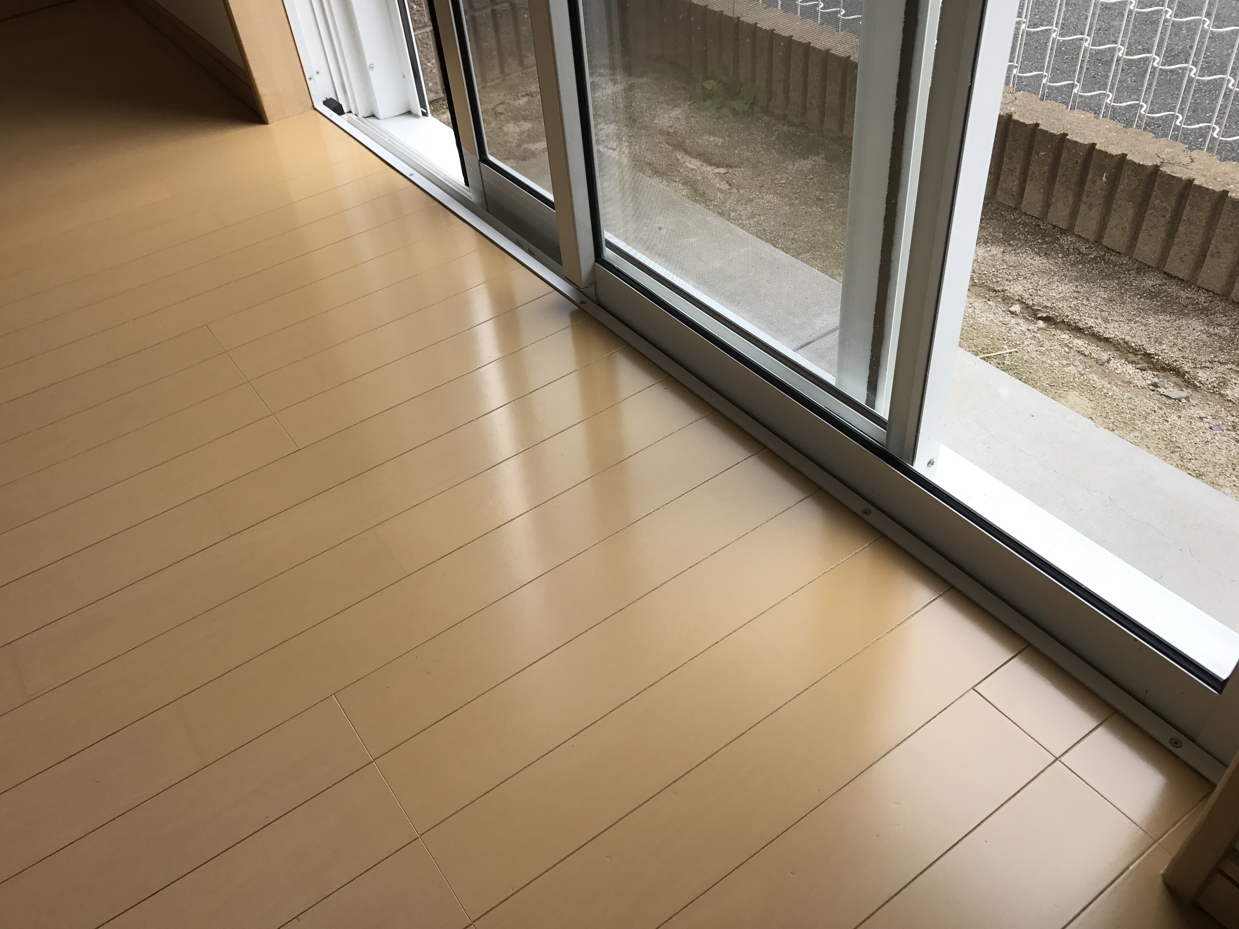 日光紫外線と結露により床表面が色あせてしまってます。