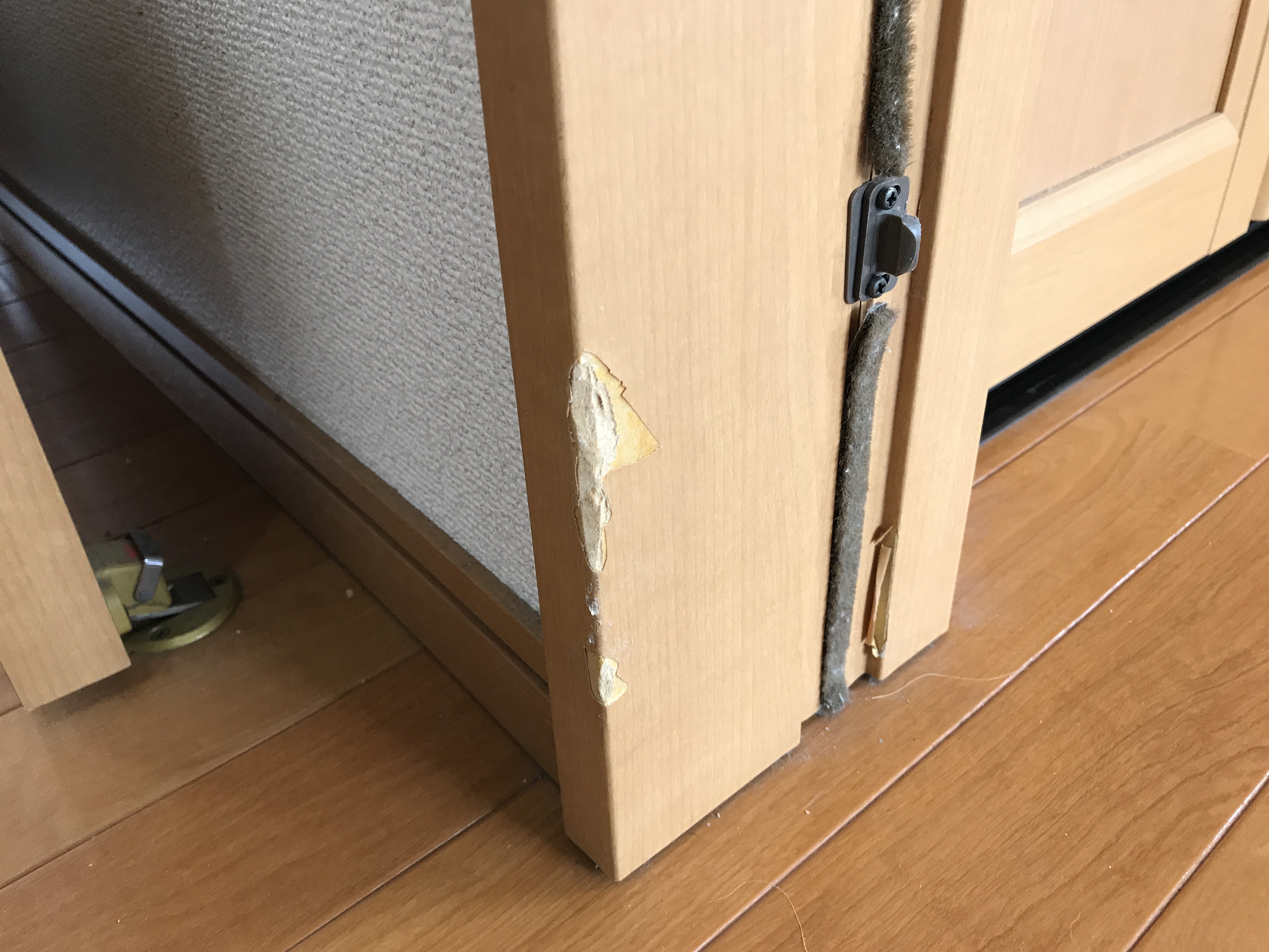 室内ドア木枠柱はがれキズ リペア補修 No.BA190509