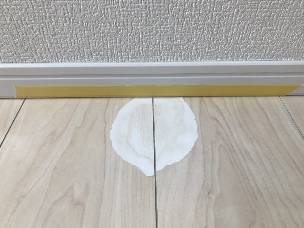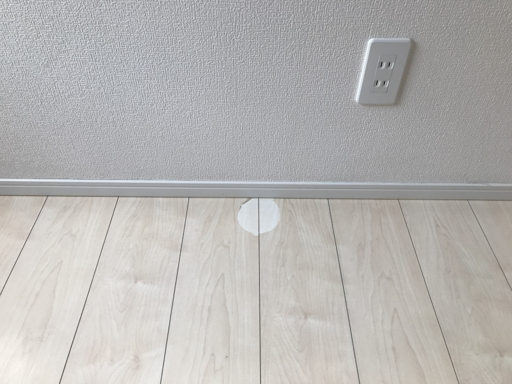壁ぎわフローリング表面シートが剥がれて(溶けて)しまっています。