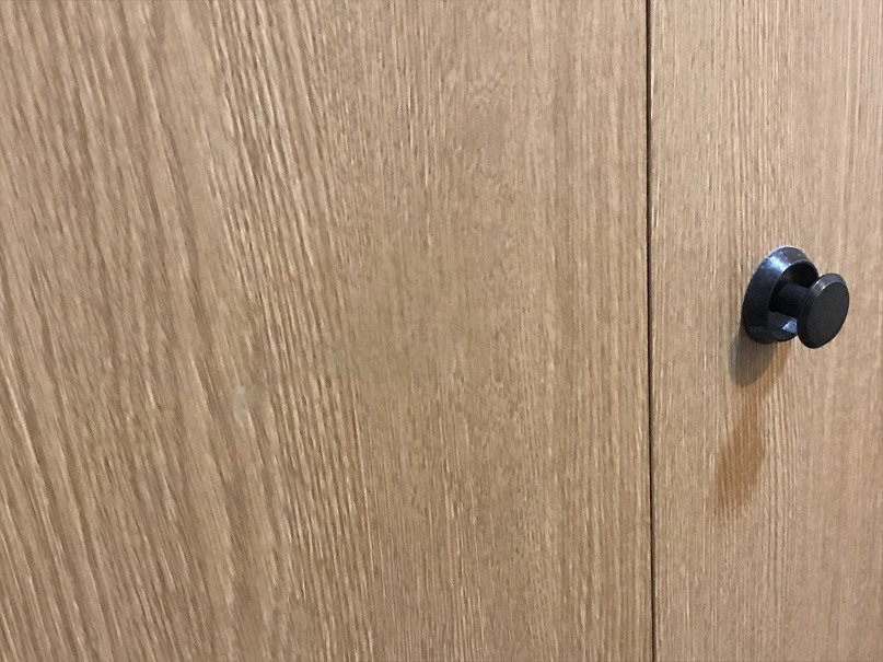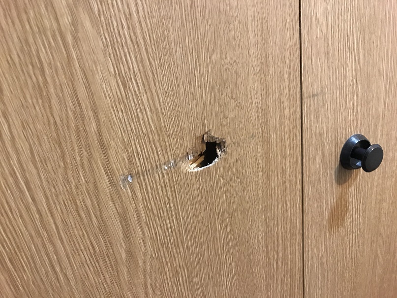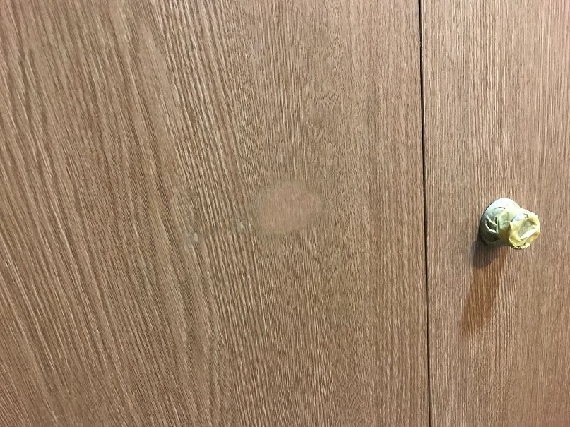 荷物を倒して物入扉表面に穴を開けてしまったようです。
