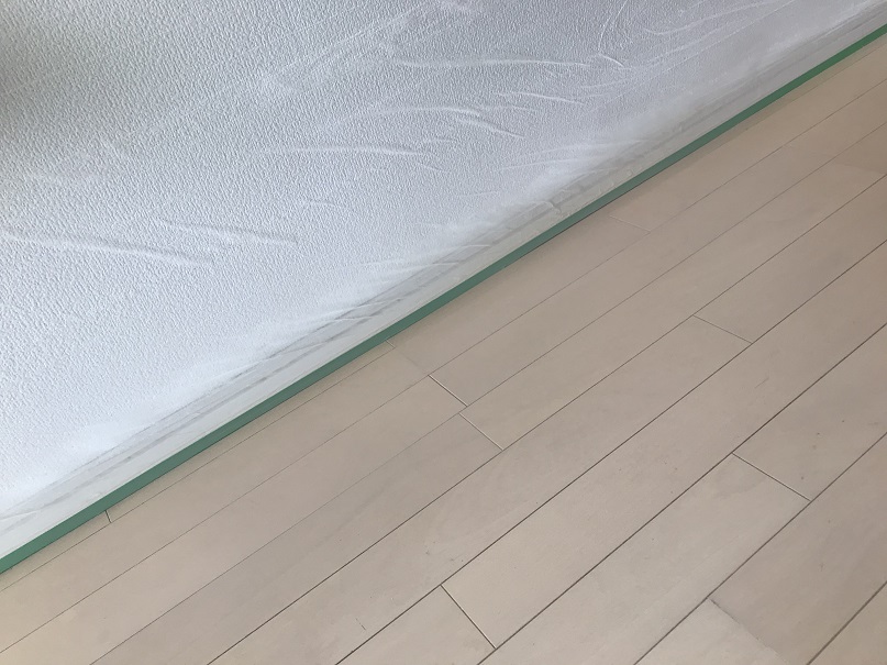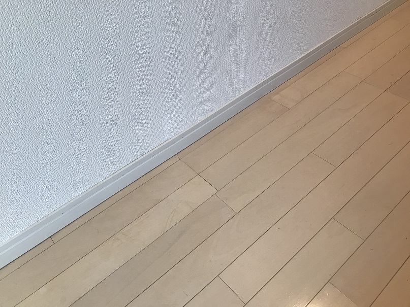 フローリング床表面に汚れシミが目立ちます。