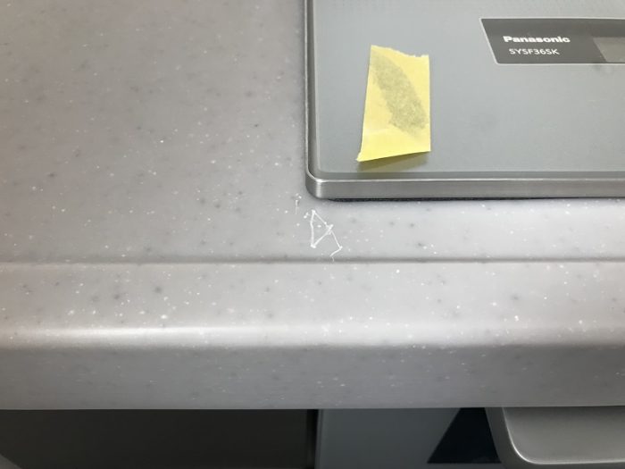 キッチンカウンター(人工大理石製天板)引きキズ リペア補修 No.BA210707