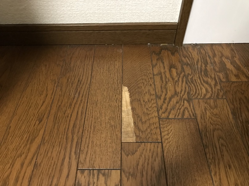 フローリングの一部が剥がれてしまって、ササクレが危ないとのこと。