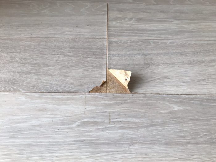 フローリングの表面が一部剥がれて(めくれて)おります。
