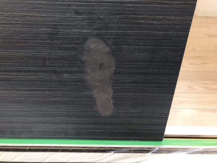 モノを倒して表面をへこませてしまったようです。