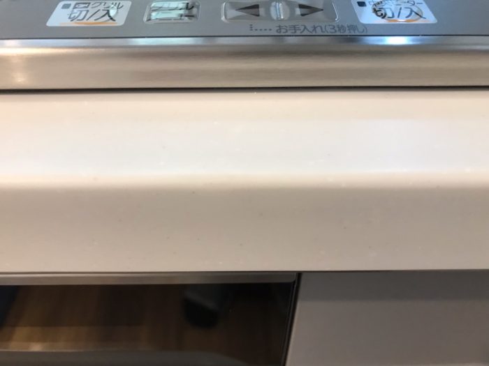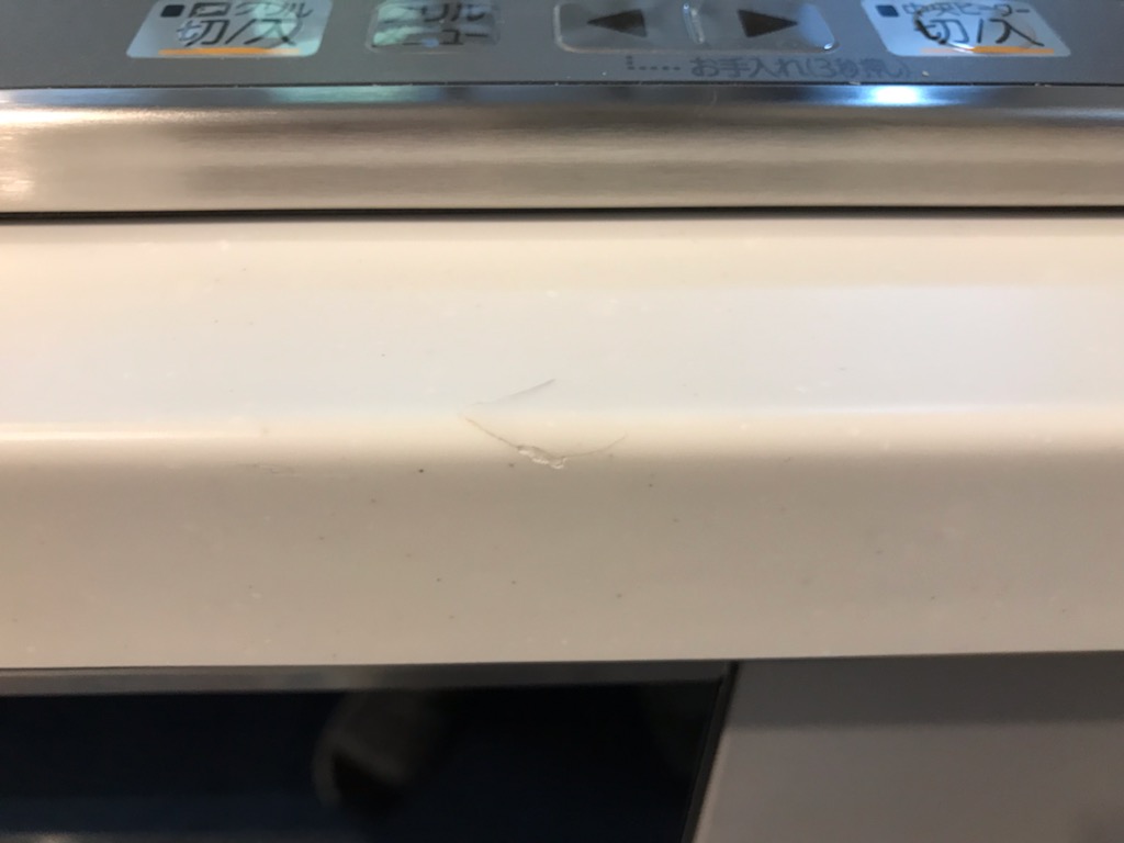 IH前コーナー部に2cm×2cm程のヒビ割れあり。