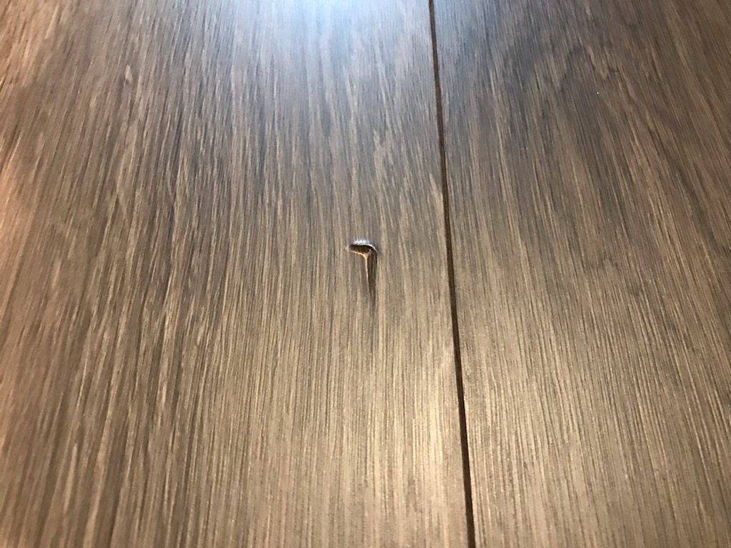 フローリング床にモノを落としてしまい凹ませてしまったとのこと。