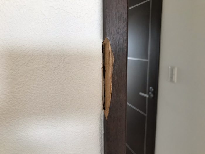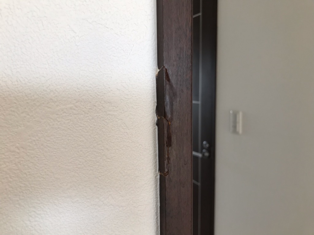 福岡市博多区のマンション物件にてリビングドア枠の破損修理のご依頼。