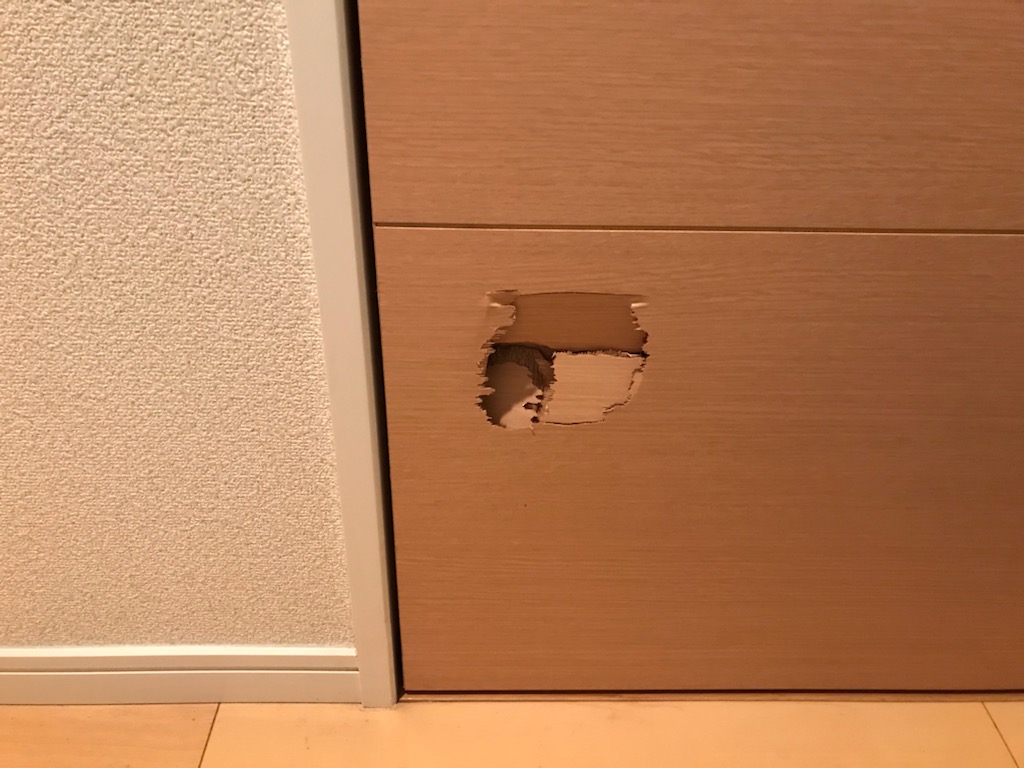 モノを倒してしまって大きな穴が開いてしまったようです。