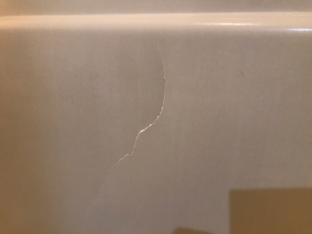 浴槽側面に約20cm程の割れ、薄く凹んでおります。